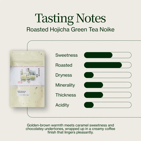 Après avoir parcouru le Japon ces dernières années, nous avons eu le privilège de rencontrer des dizaines de cultivateurs et d'essayer de nombreux types de thé hojicha. Le hojicha est un thé qui nous a toujours échappé et il nous a fallu beaucoup de temps pour en trouver un qui réponde à nos exigences. Finalement, nous avons trouvé le Noike Hojicha, dont nous sommes tombés amoureux. Peu après, nous avons rencontré M. Issin qui a produit un fantastique kuki hojicha dont nous ne pouvions nous passer. Nous avons la chance de travailler avec de nombreux cultivateurs talentueux et nous sommes fiers de partager leur thé avec vous tous !