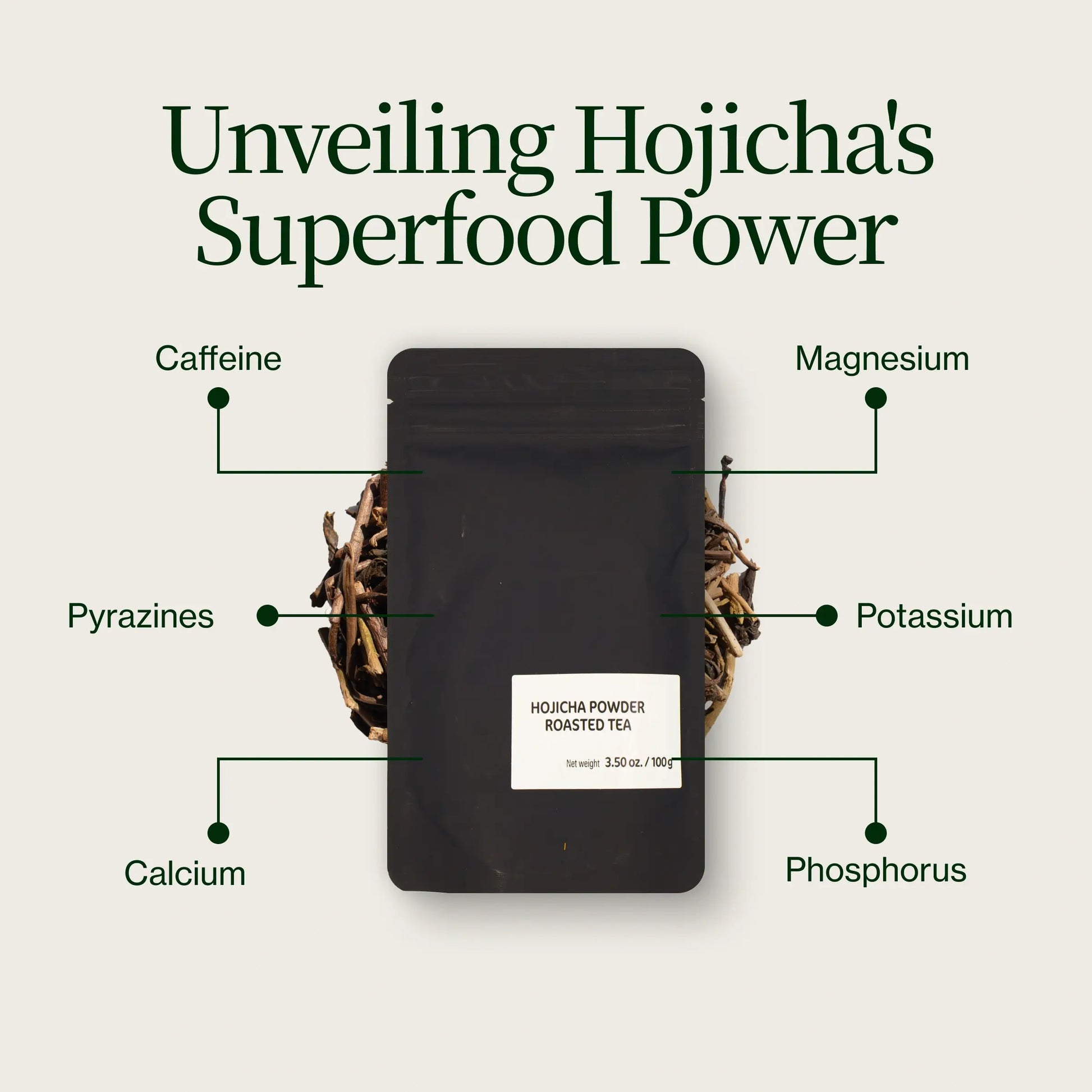 - Pour trouver la meilleure poudre de hojicha que le Japon a à offrir, nous effectuons méticuleusement des tests de goût sur chaque variété de thé provenant de nombreuses fermes différentes.