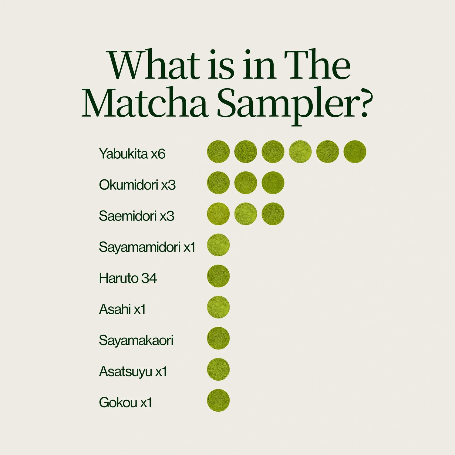 De la vivacité du Yabukita à la profondeur savoureuse du Gokou, en passant par l'onctuosité de l'Okumidori, ce coffret met en valeur les cultivars de matcha les plus réputés du Japon. Comparez chaque tasse, notez vos préférés et découvrez l'association cultivar-région qui vous correspond. Notre équipe a passé des années à visiter des fermes à travers le pays, évaluant d'innombrables récoltes ; les meilleures de ces dégustations sont désormais réunies dans ce coffret soigneusement sélectionné.